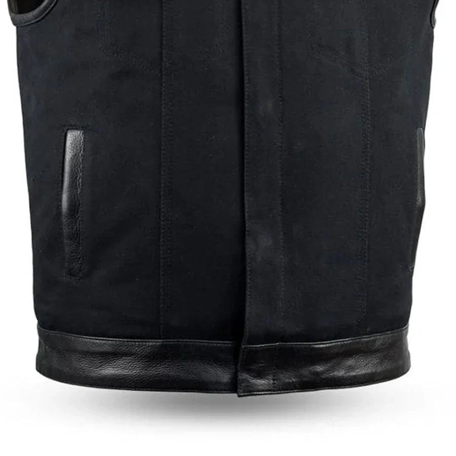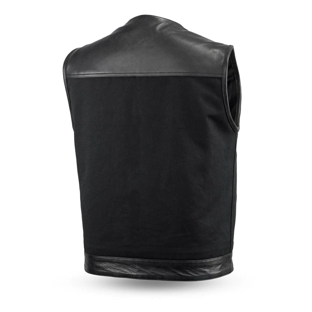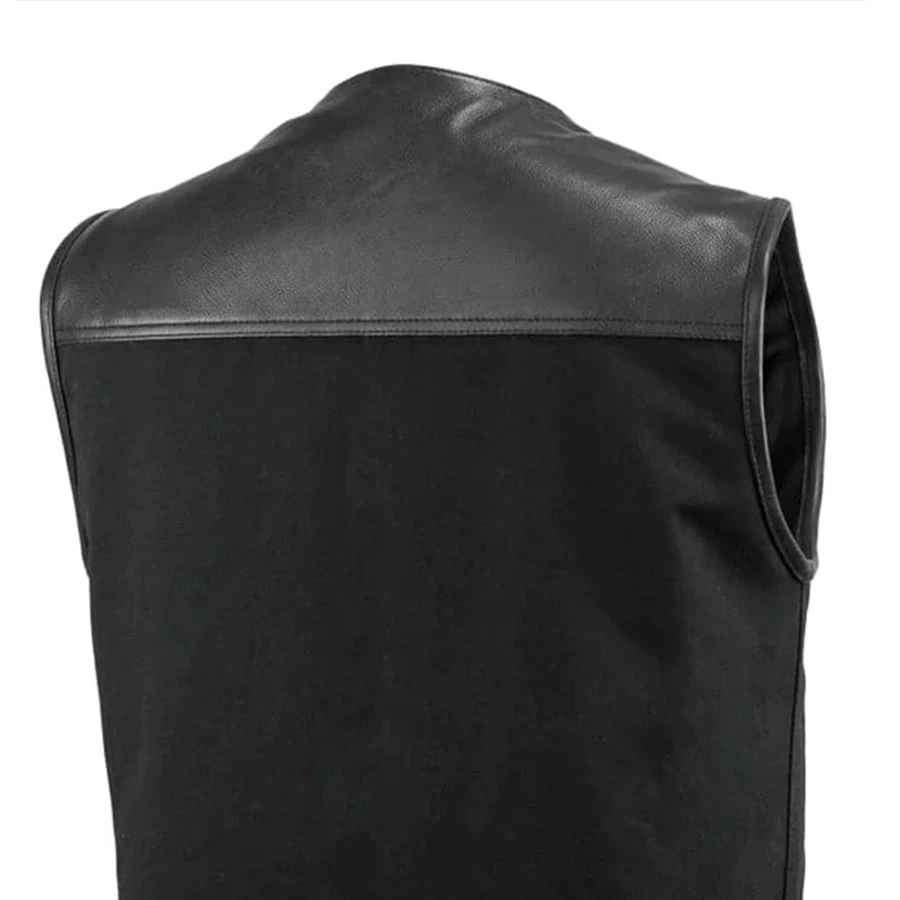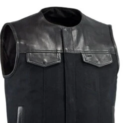 FIM4951CNV-N | 49/51 – Men’s Motorcycle Leather/Canvas Vest – No Collar