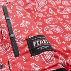 - Three panel: Red background with white paisley inner lining with easy access panels for patches and embroideries