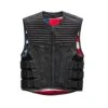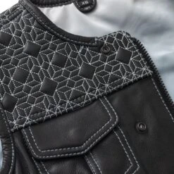 Looking for a unique, limited edition vest in black and baby blue? Here you go! The Angelite features stained glass quilt texture on the shoulders in baby blue stitching. This one won’t last long!