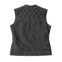 - Club style vest with one inch collar, covered snaps and hidden zipper