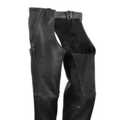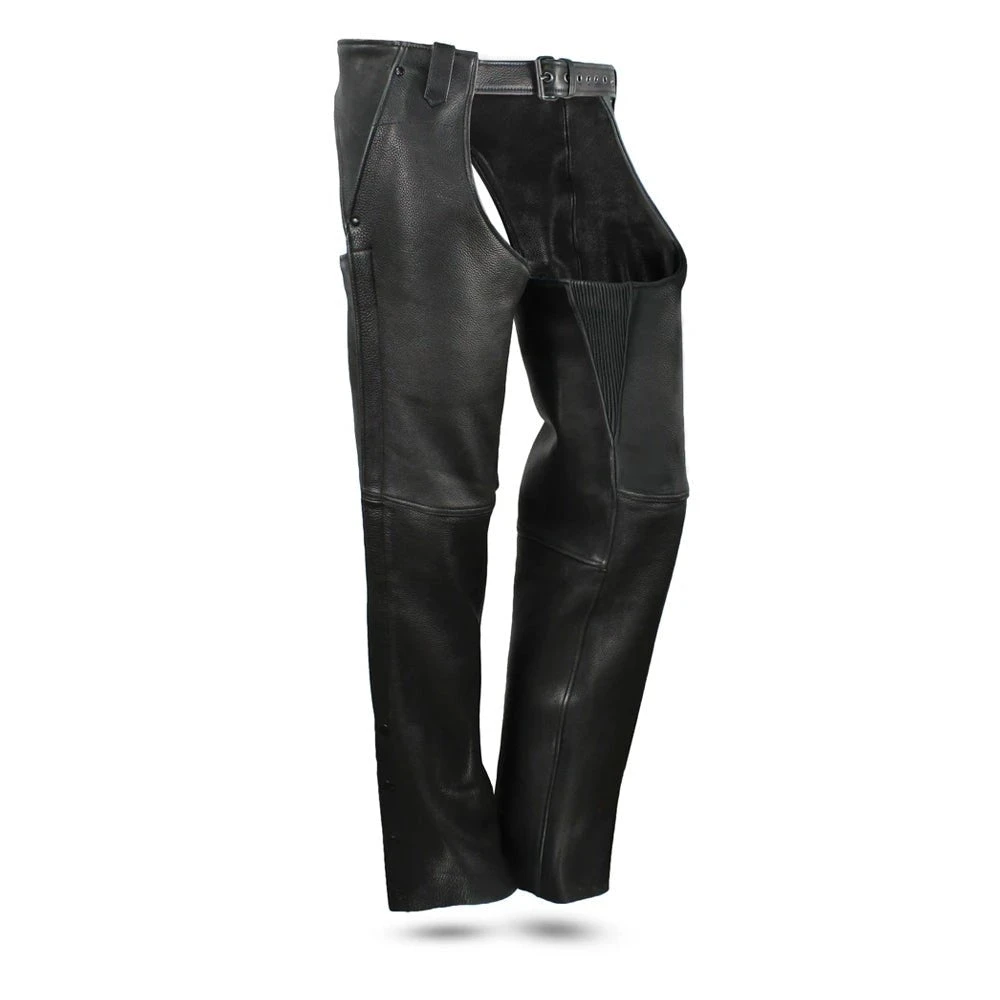 Looking for a clean, simple and classic set of chaps? The Bully is perfect for you – these chaps are unisex, unlined and feature stretch panels on the belt and inner thighs for comfort. Two pockets, and blacked out hardware keep the clean, black look going. All of our chaps come extra long so you can trim them to fit perfectly.