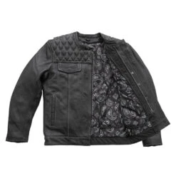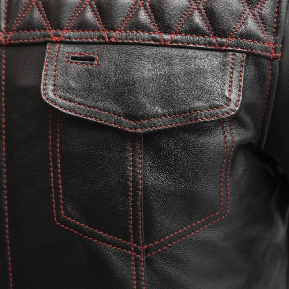 The Cinder is a limited edition, cafe style leather jacket featuring diamond stitching across the shoulders. The cropped center zipper, banded collar and covered snaps compliment the array of pockets, including conceal carry pockets, exterior pockets, and armor pockets for CE rated armor. The zip out thermal liner keeps you warm when you need it, or remove it for warmer weather!