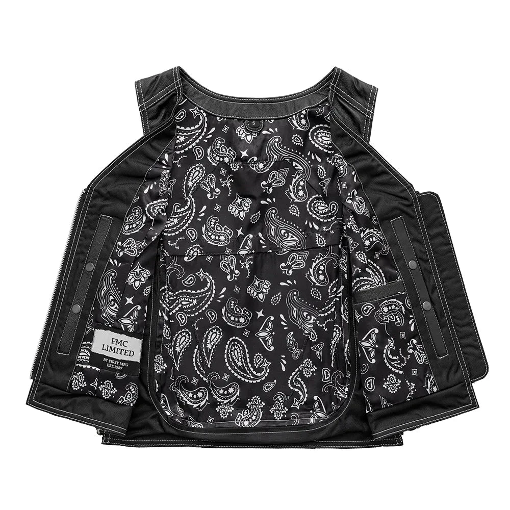 - Black background with white paisley Satin lining with easy access panels for patches and embroideries