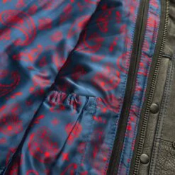 - Three panel liner: Navy Blue background with Red paisley inner lining