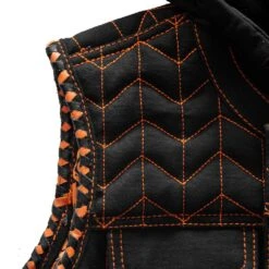 Want to go big and bold? The Cross Fox is a cropped club style vest, hitting three inches shorter than our average vest. Rock the orange and black details all over, including the chevron quilted stitching. It’s got a zip out, removable hood, along with all of the best First MFG pockets.Â