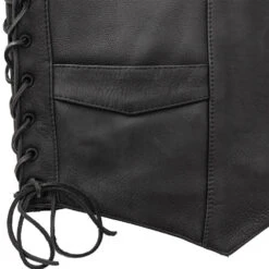 Looking for a classic western style vest? The Deadwood is a heavier duty, Platinum Naked leather vest with a v-neck and branded, four snap front. With conceal carry pockets, and mesh lining, this one is useful and comfortable. It’s got side lacing, making it easy to adjust the fit, especially when seated in a riding position.Â