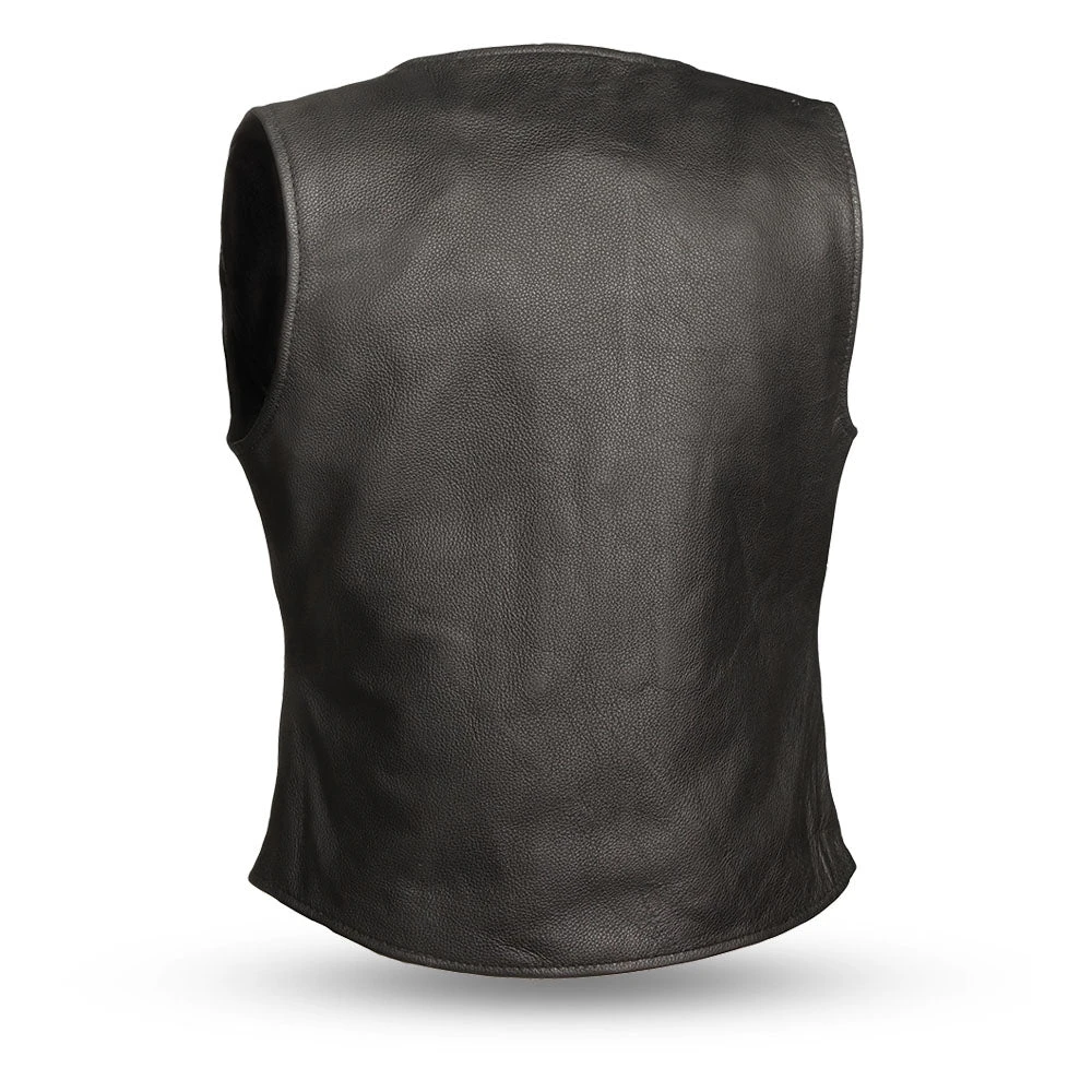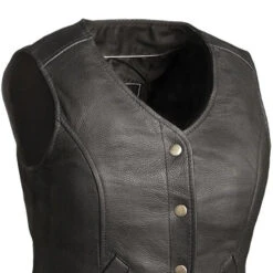 The Derringer leather vest is crafted for riding motorcycles and looking fabulous. The V-neck and snap down style is classic in women’s motorcycle gear, and it’s crafted from Naked Cowhide. The single back panel is great for adding patches, while features like the conceal carry pockets make it convenient to carry the things you need on your ride.