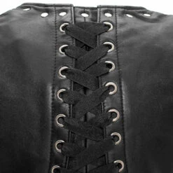 The Empress is for those who want some serious style points – the rivets and corset back lining make this V-neck, buttery soft, sheep leather vest stand out in a crowd! Lots of pockets including conceal carry, cell and two summary slash pockets, along with accordion stretch at the hips.Â