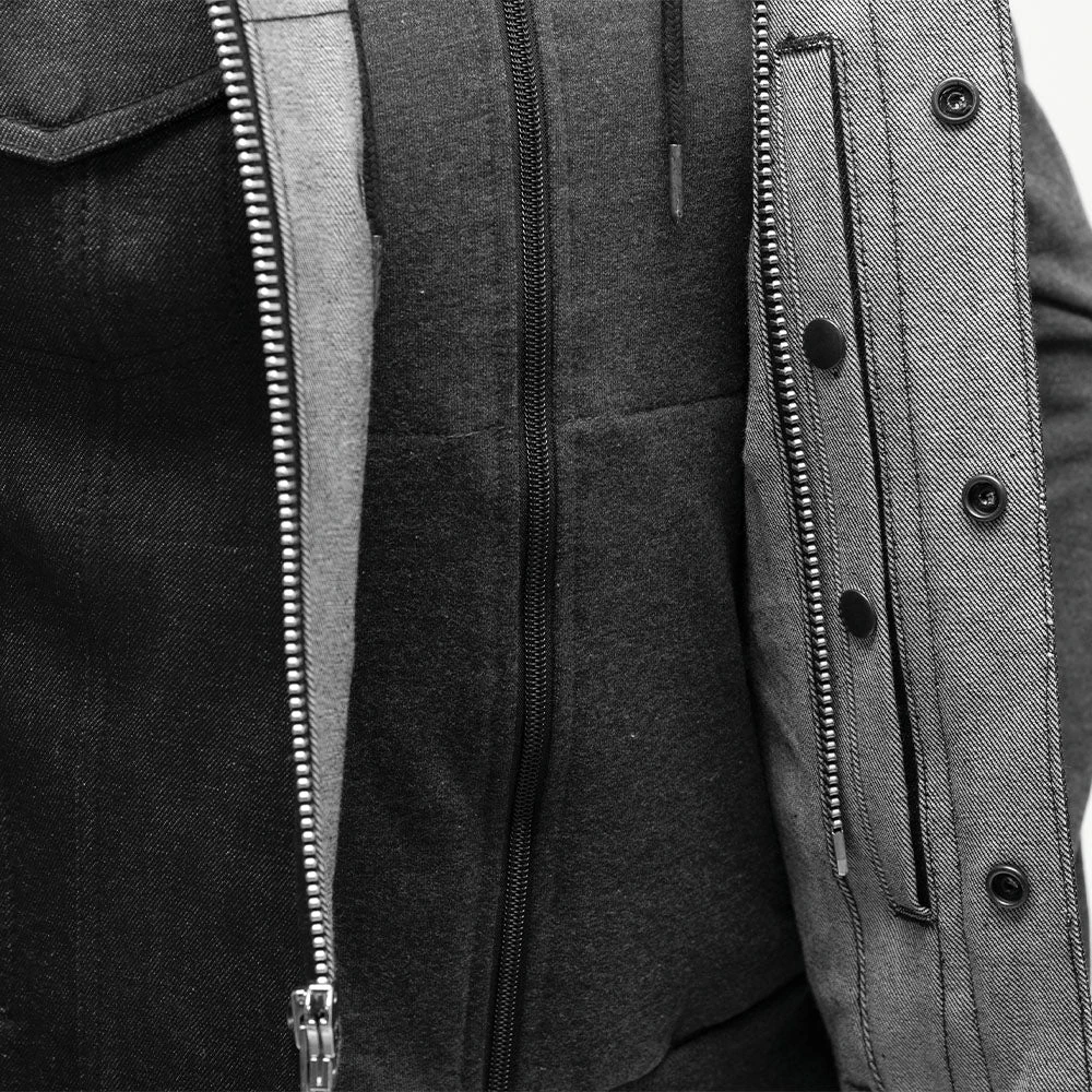 The Essex is a Rough Neck Raw Denim vest with a removable sweatshirt, because who doesn’t love versatility? The club style motorcycle vest is unlined, so it’s perfect for layering with our heavyweight hoodie. Of course, it’s got our conceal carry pockets, along with four exterior pockets.