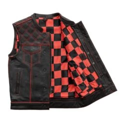 M043 | Red Checker – Men’s Motorcycle Leather Vest