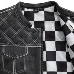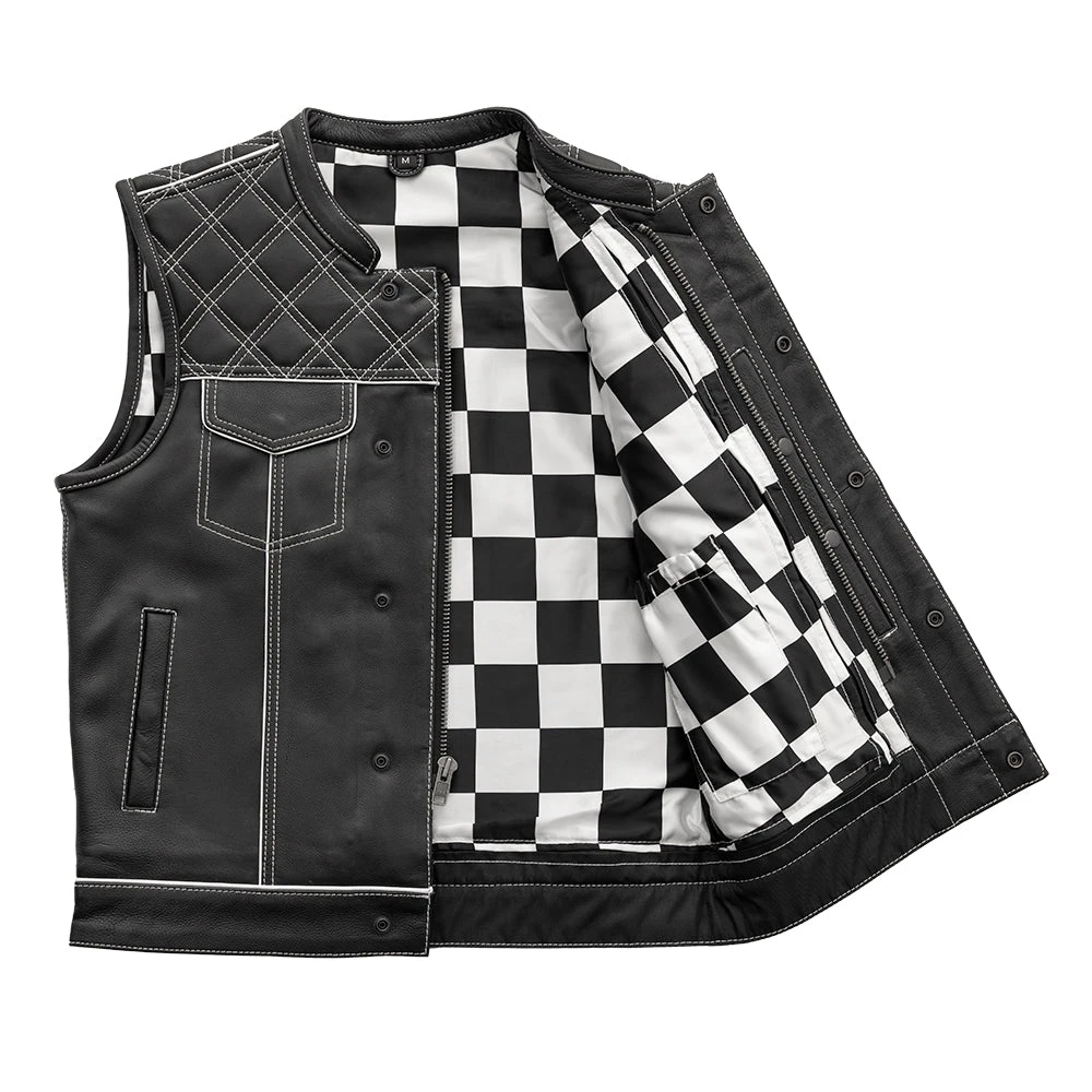 M041 | White Checker – Men’s Motorcycle Leather Vest
