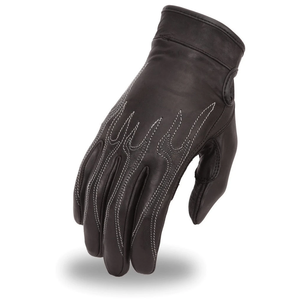Looking for a hot glove? The Fire Blade gloves are a driving style glove with contrast embroidered flame design on premium aniline cowhide leather. These have a gel palm, lightweight liner, and Velcro strap.