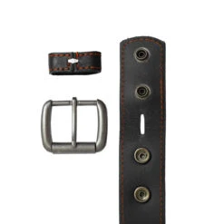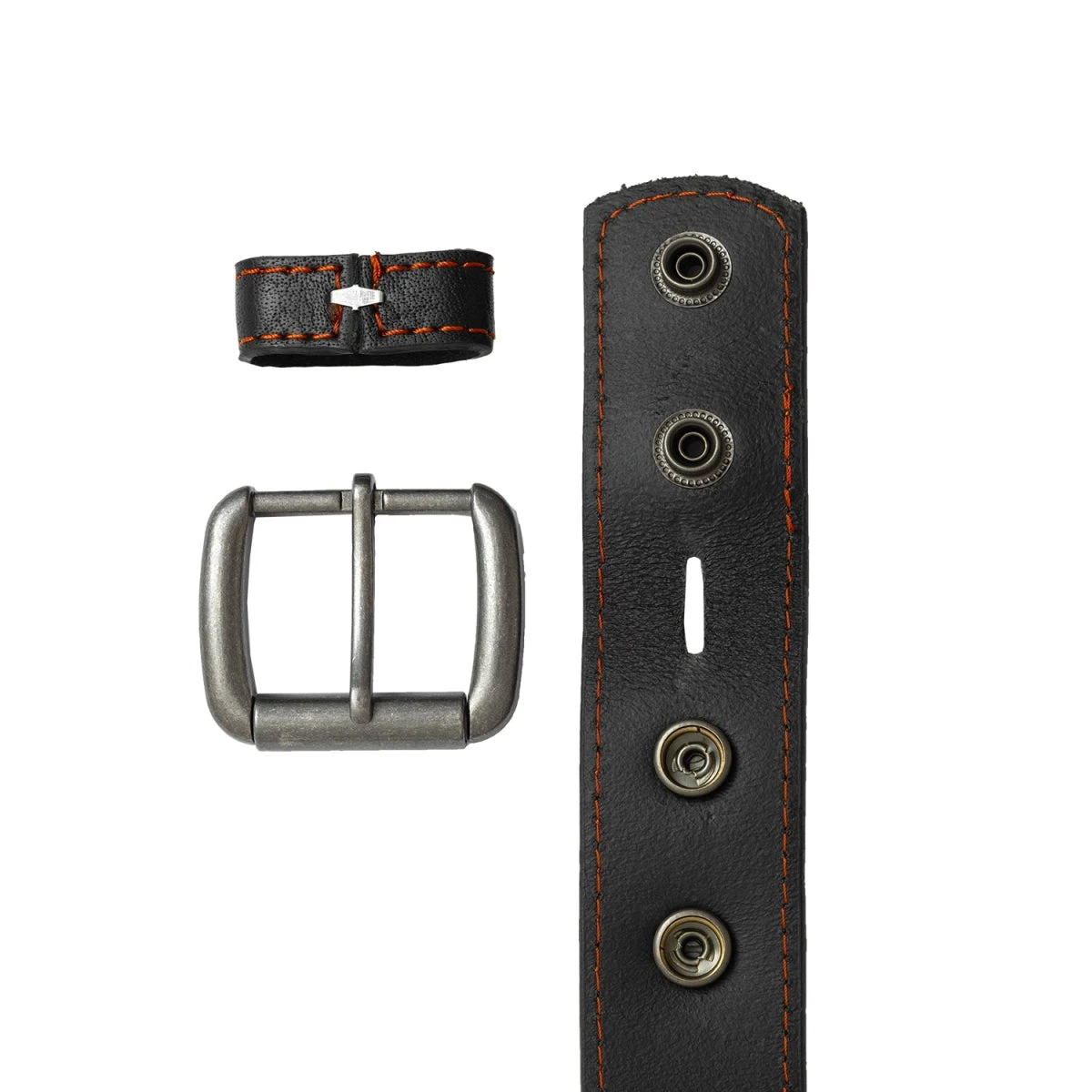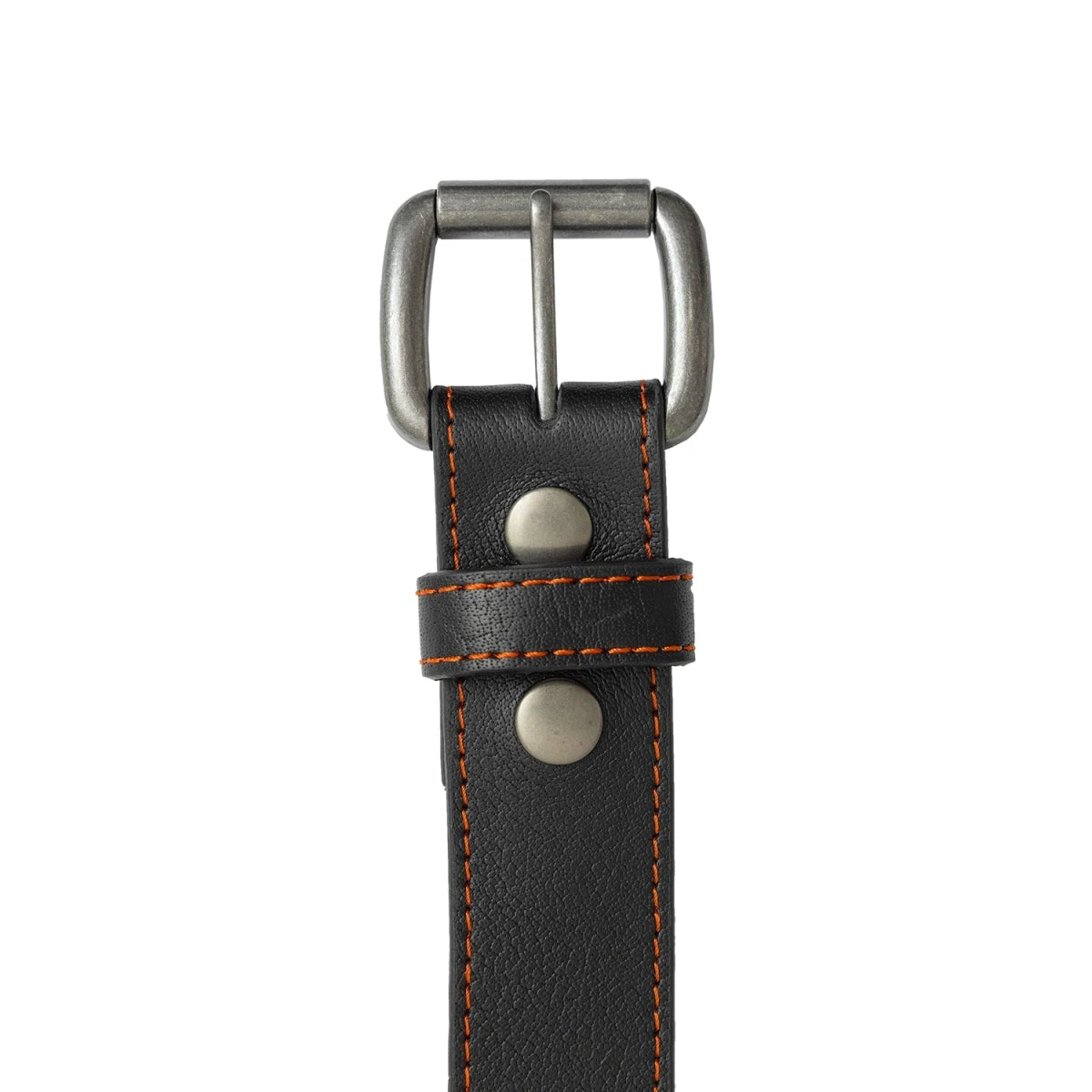 FIMB16011 | Leather Belt: Full Grain with color stitching. Pressed and buffed cowhide leather. Available in sizes 32-52. Removable buckle. Lifetime Warranty