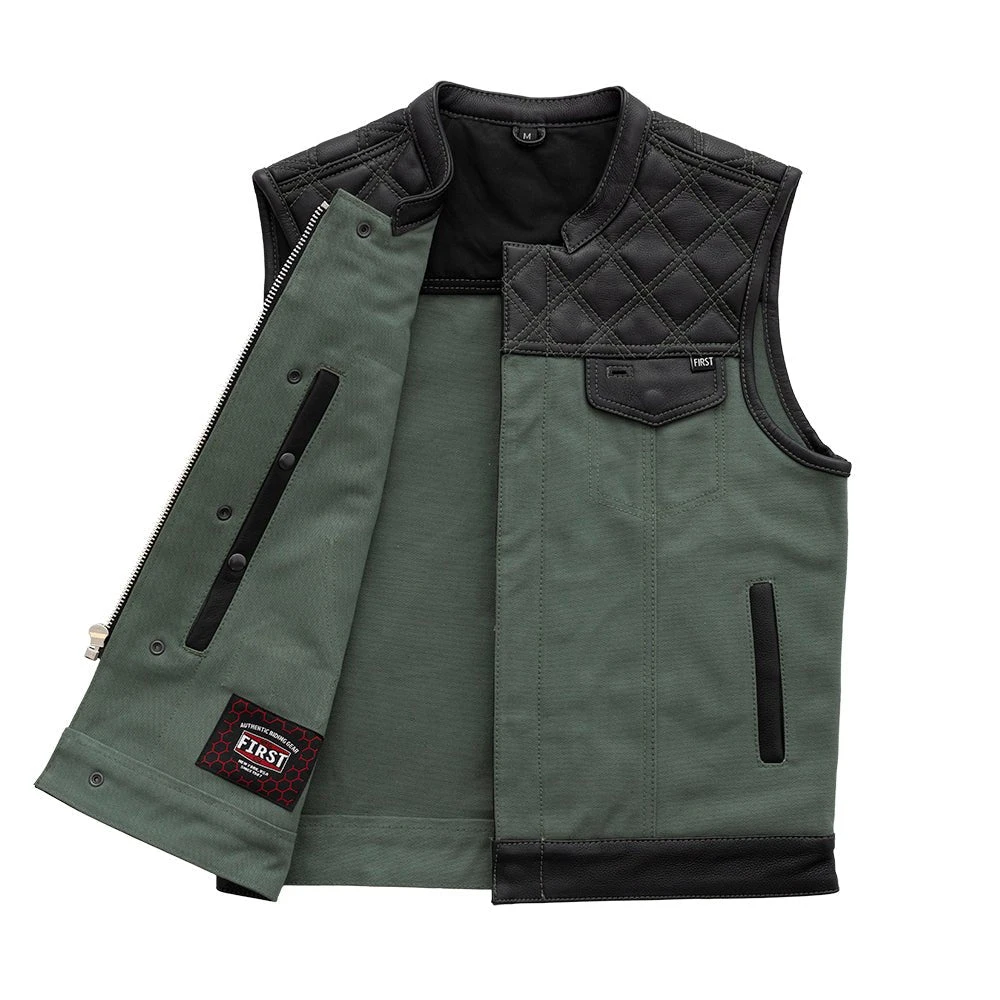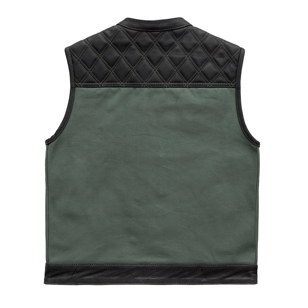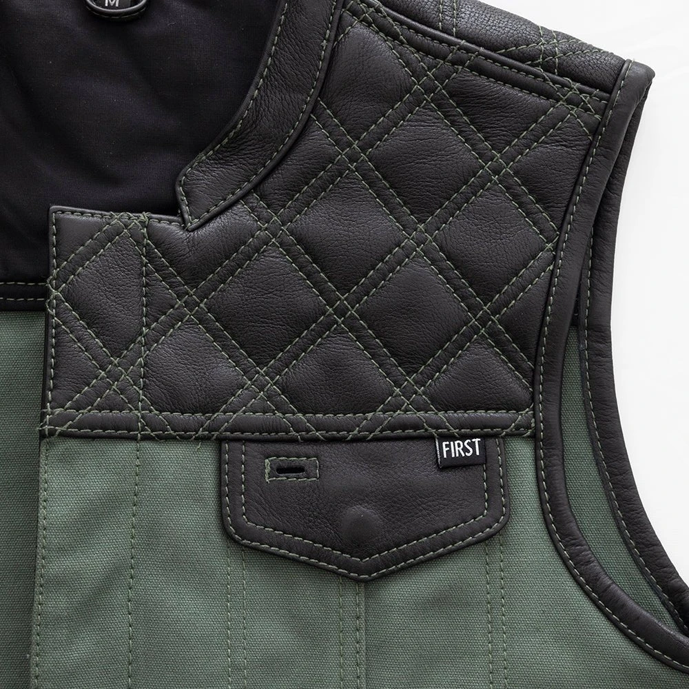 FIM664CNVQ | Hunt Club – Men’s Motorcycle Leather Canvas Vest – Green