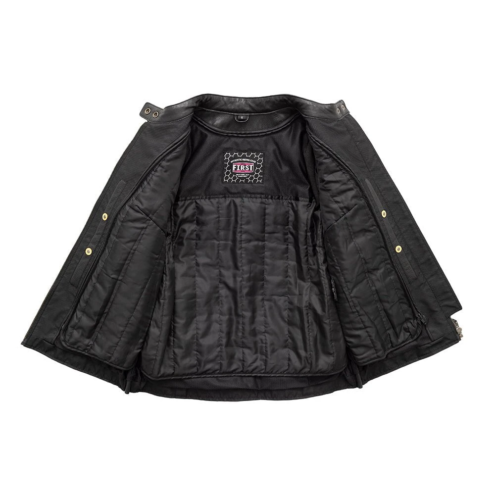 The Jewel is both simplistic and has great details at the same time. This jacket will be right at home on any motorcycle! With a full-length center zipper, and snap collar, plus two angled pockets up front, plus two zippered pockets, you’ll have plenty of storage! Out back, this jacket has an action back with zippered vents, and two side belts with buckles. The insulated liner is fully removable, so you can adjust depending on the temperature.
