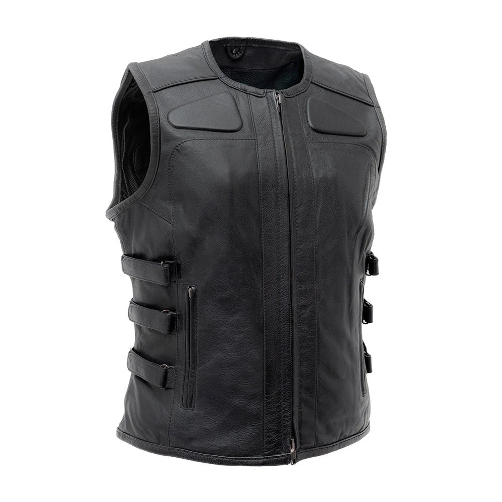 FIL585CDM | Katana – Women’s Motorcycle Leather Vest – Black