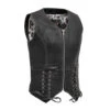The Leela is a lightweight leather shirt, featuring hidden snaps down the front, along with a snap down shirt collar. The action back ensures you’re comfortable even when reaching for your handlebars. The three panel flannel liner provides some extra warmth, and conceal carry pockets allow you to carry whatever you need to bring along! This one is limited edition, so grab it before it’s gone!