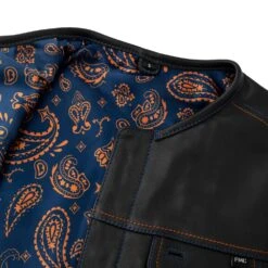- Three panel liner: Orange paisley on Navy Blue background inner lining