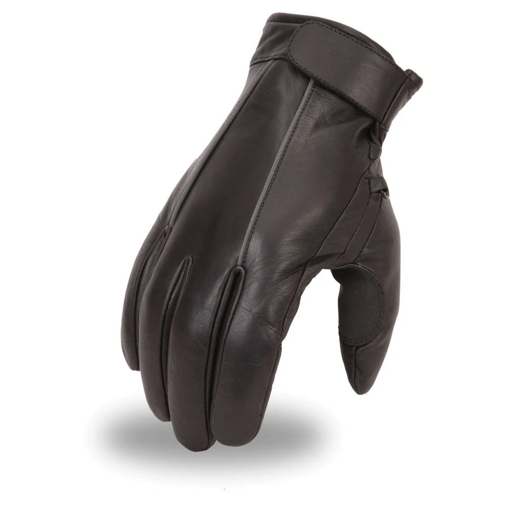 - Menβs cruiser gloves featuring reflective piping, throttle grip and adjustable Velcro wrist strap. Made in premium Aniline cowhide.