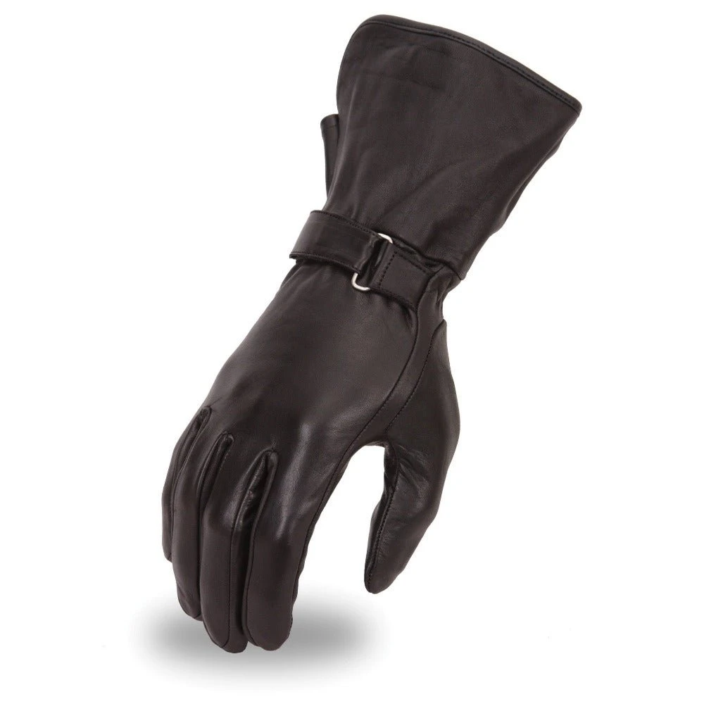 Gauntlets are great for cold weather riding, with a long cuff to keep the wind out of your sleeves. The Open Road gloves are lightweight, and lined, naked cowhide with an adjustable wrist strap.