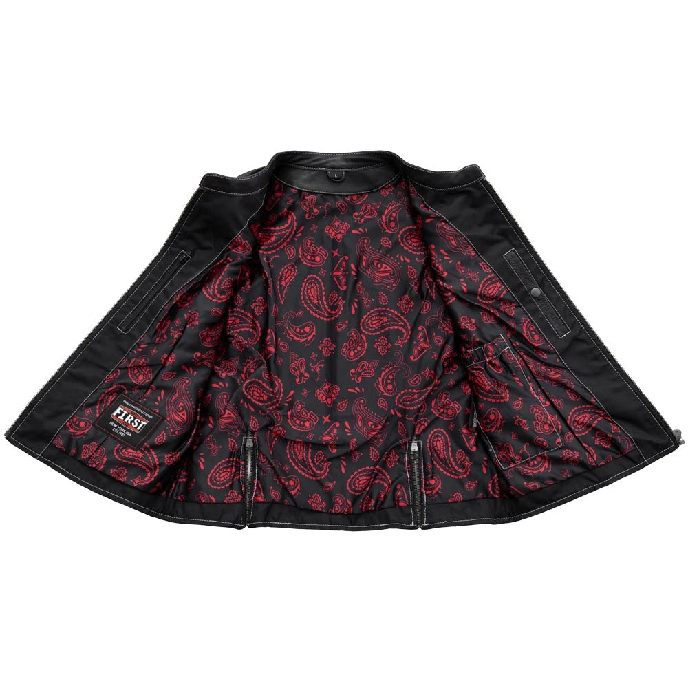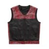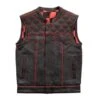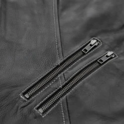 The Quinn is a limited edition, club style vest with some serious fashion cues. This center zip, Diamond Naked Cowhide leather vest has one conceal carry pocket, an accessory pocket, and five zippered pockets on the front.