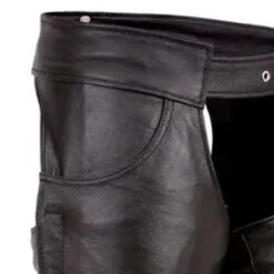 Chaps are an item every motorcyclist should have! These unisex chaps are crafted from quality Naked Cowhide. This version, the Rally Tall, have a 34″ inseam for those who need a little extra length. The Rally features traditional front pockets, just like your favorite pair of jeans. Heavy duty mesh lining helps keep you comfortable no matter the weather.