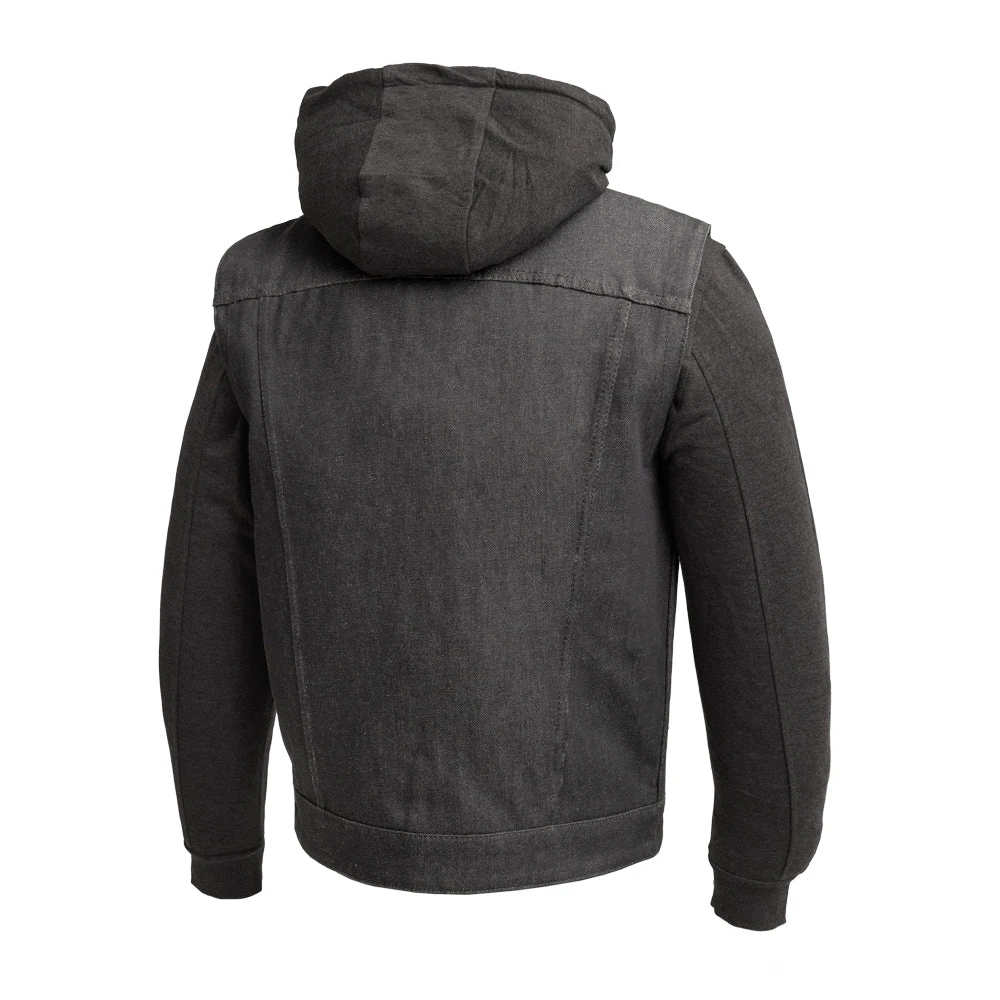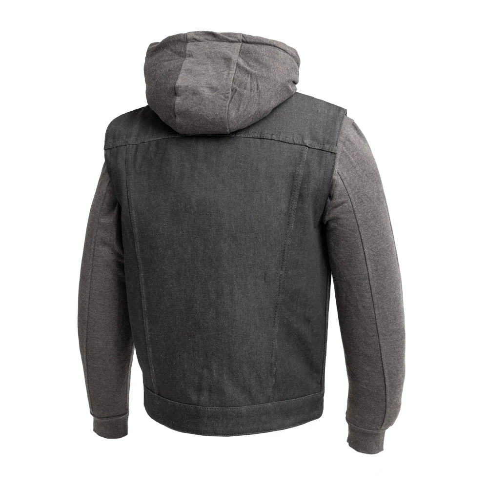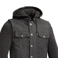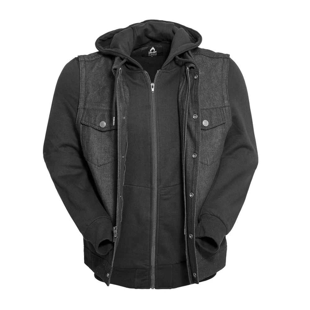 FIM697DMH | Rook – Men’s Motorcycle Denim Vest with Gray & Black Base Hoodie