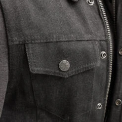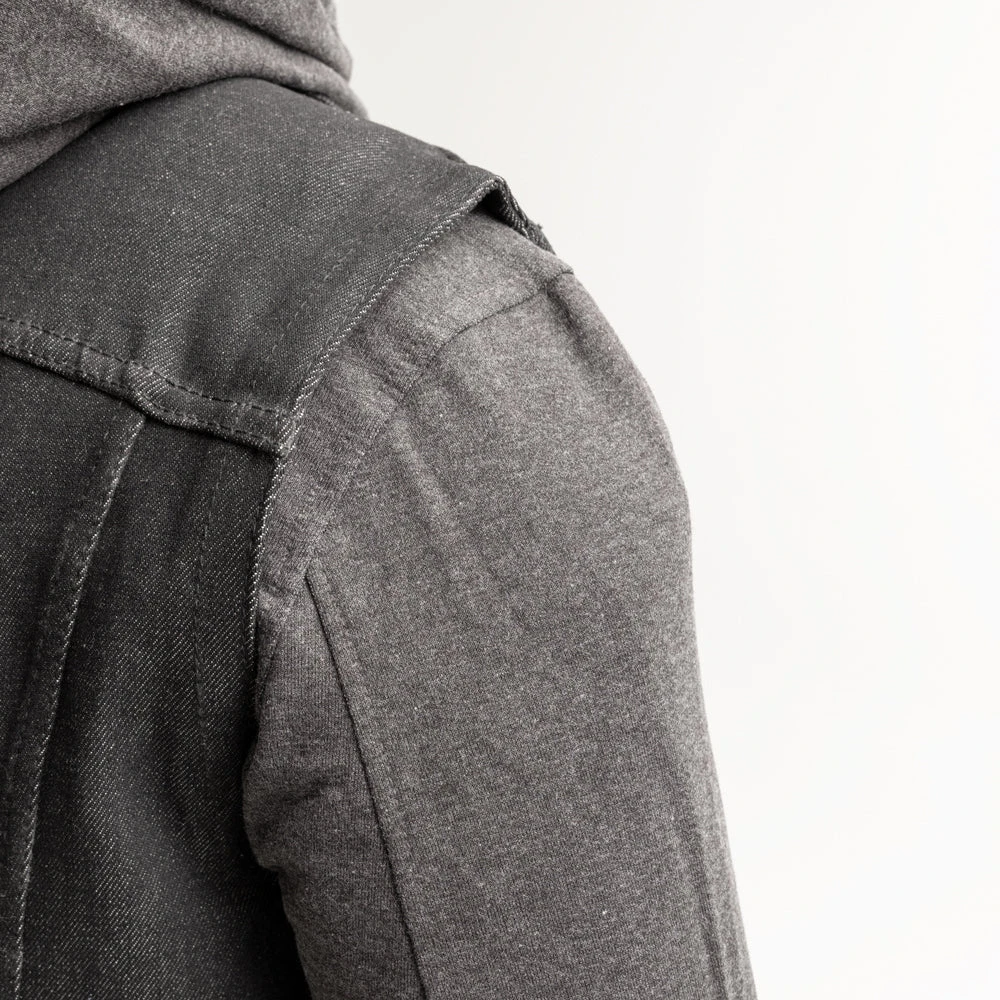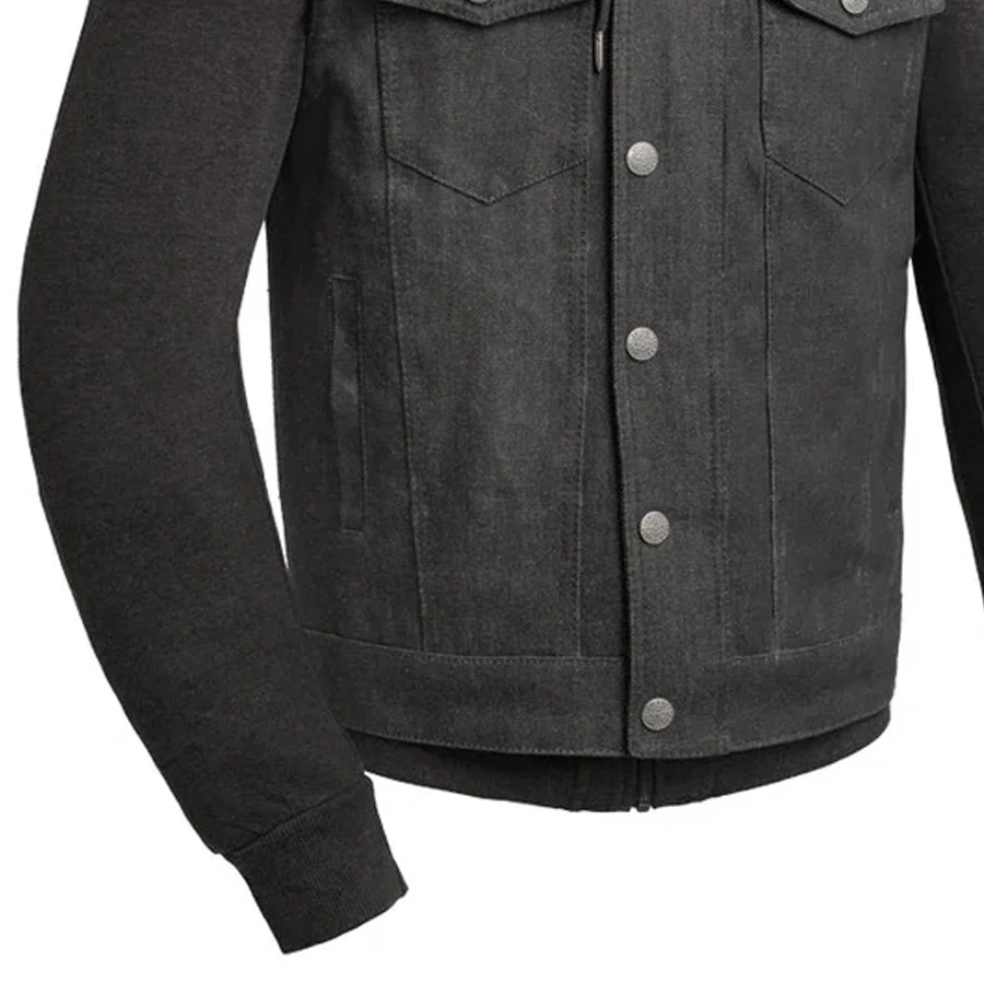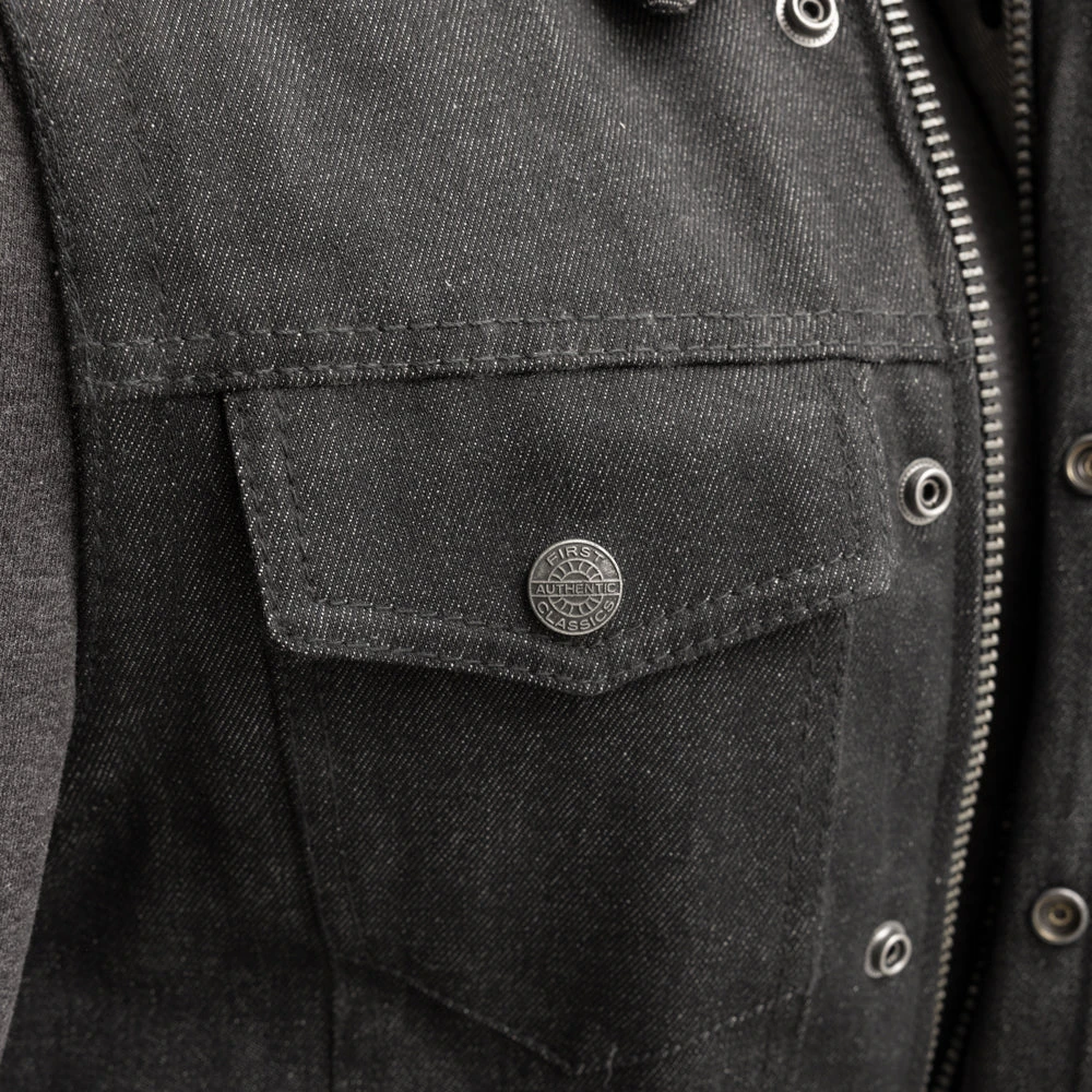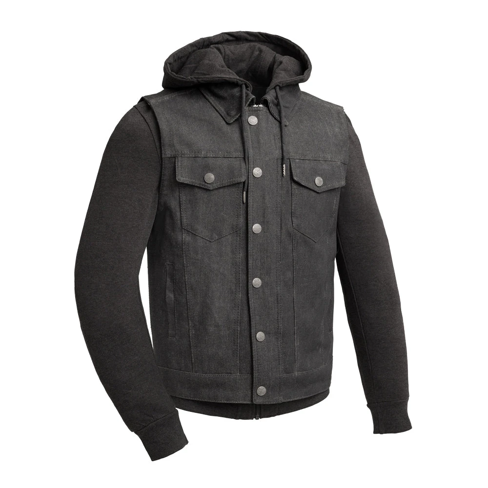 FIM697DMH | Rook – Men’s Motorcycle Denim Vest with Gray & Black Base Hoodie
