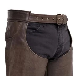 The Stampede are a unisex fit traditional style chaps available in black or brown Naked Cowhide leather. Two traditional style pockets – like your favorite pair of jeans – and heavy duty mesh lining. All of our chaps come with extra length so you can trim them to fit you perfectly.Â