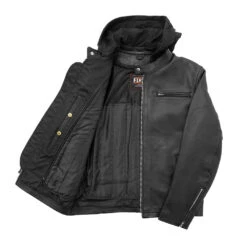 The Street Cruiser is the perfect jacket for your next motorcycle ride. It’s a center zip style with a banded collar, and zip-off, removable hood. This jacket includes all of our most popular features, such as two interior utility pockets, armor pockets, and an insulated, zip out liner. The perforated action back provides ventilation and the ability to move and reach your handlebars.Â