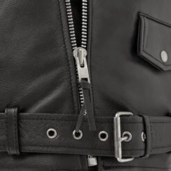 Looking for that classic, Brando style motorcycle jacket? This is it! This is a classic heavier weight style jacket with the asymmetrical zip and snap down lapel. It’s got all the classic pockets, a half belt, quilted lining, and action back.