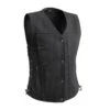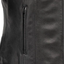 This jacket has a one inch, snap collar, a hidden full length zipper, and two zippered chest pockets. Two zippered slash pockets also adorn the front, with zippered vents in the back. The action back will ensure your comfort when seated in the riding position, too! The insulated liner is fully removable, and there is two conceal carry pockets for anything you need to bring along on your trip.