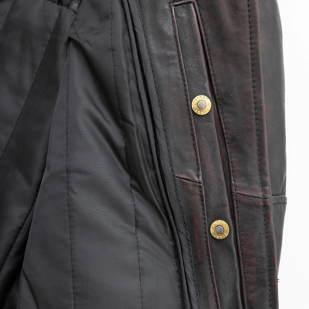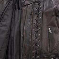 The Wildside is a buttery soft cowhide jacket with a little something extra – the lace down front for extra style points. This jacket has a removable liner and vents, so it is perfect for chilly motorcycle rides, AND warm ones!
